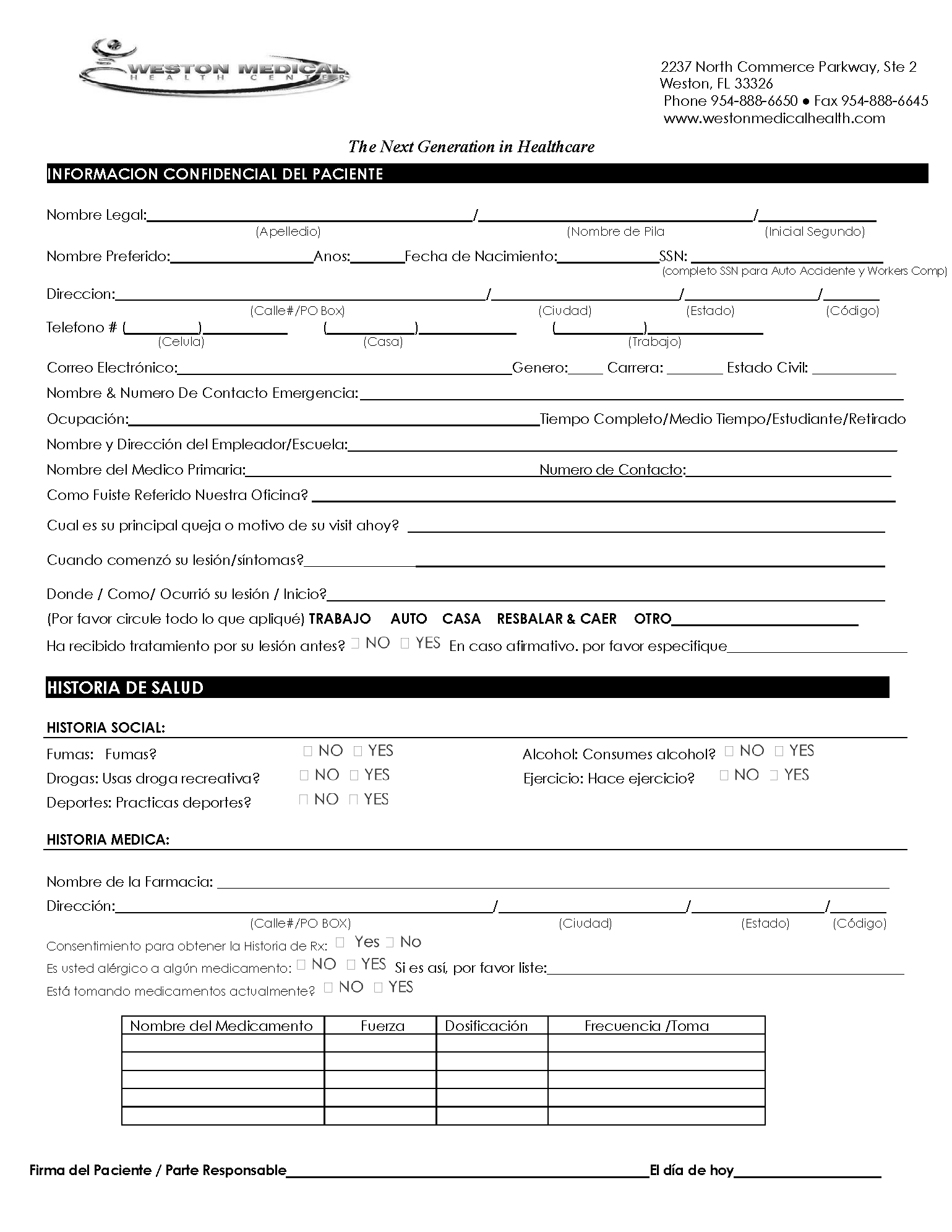 Patient Forms Patient Forms Save some time at your appointment. Download, print and fill out these Patient Intake Forms and bring them with you on your visit. Patient Intake Form (English) Patient Intake Form (Espanol) Automobile Accident Intake Form Automobile Accident Intake Form (Espanol) Authorization to Release Medical Records Cancellation/No Show Policy